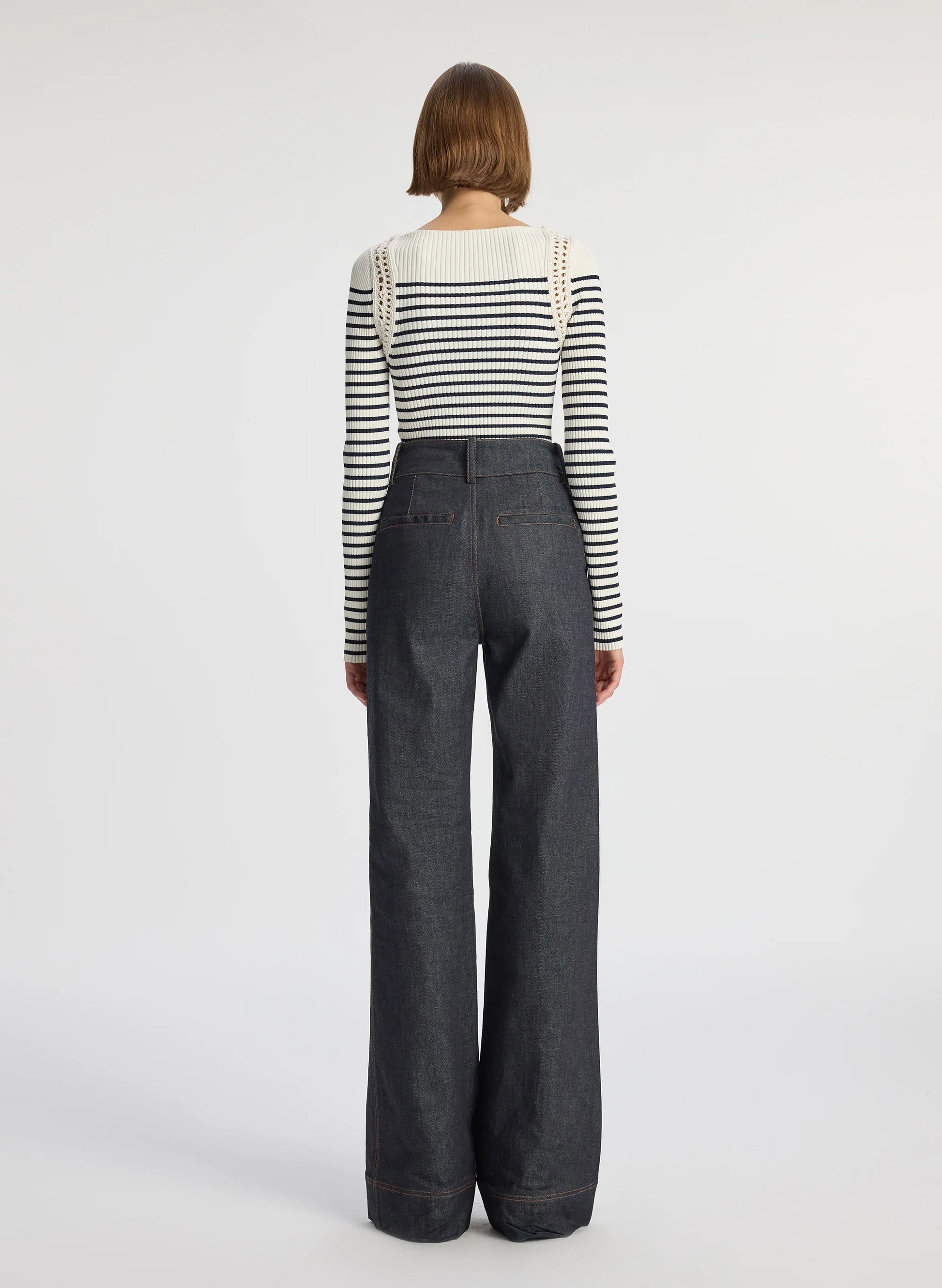 Styling Tip: Pair with wide-leg jeans and loafers for modern maritime-inspired style.